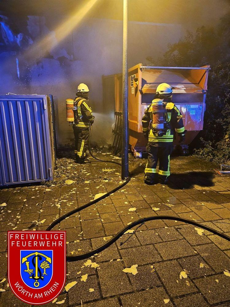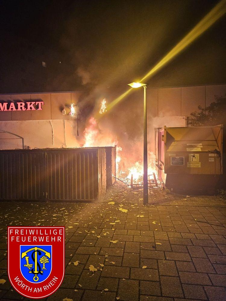 Wir wurden zu einem gemeldeten Müllbrand im Bereich der Marktstraße in Wörth alarmiert. Nach dem Eintreffen an der Einsatzstelle meldete der Einsatzleiter den Brand zweier Müllcontainer.