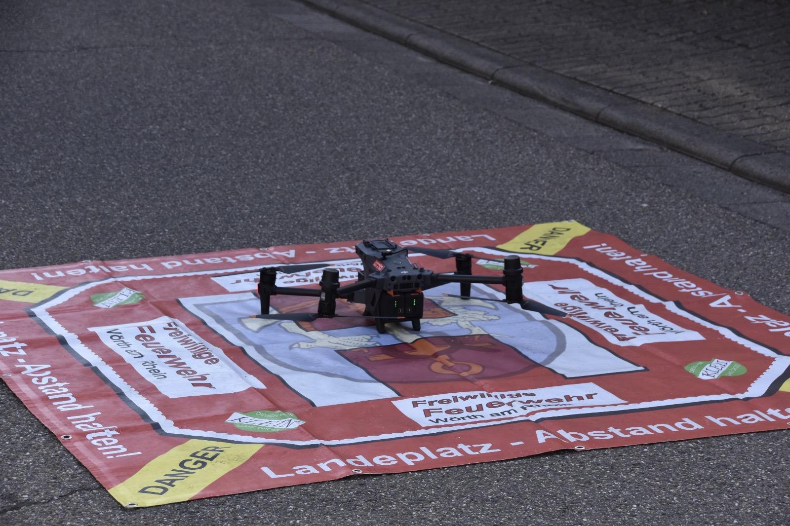 Die Drohne des Drohnen-Einsatz-Teams der Stadt Wörth unterstützte die Einsatzleitung bei der Lageerkundung aus der Luft.