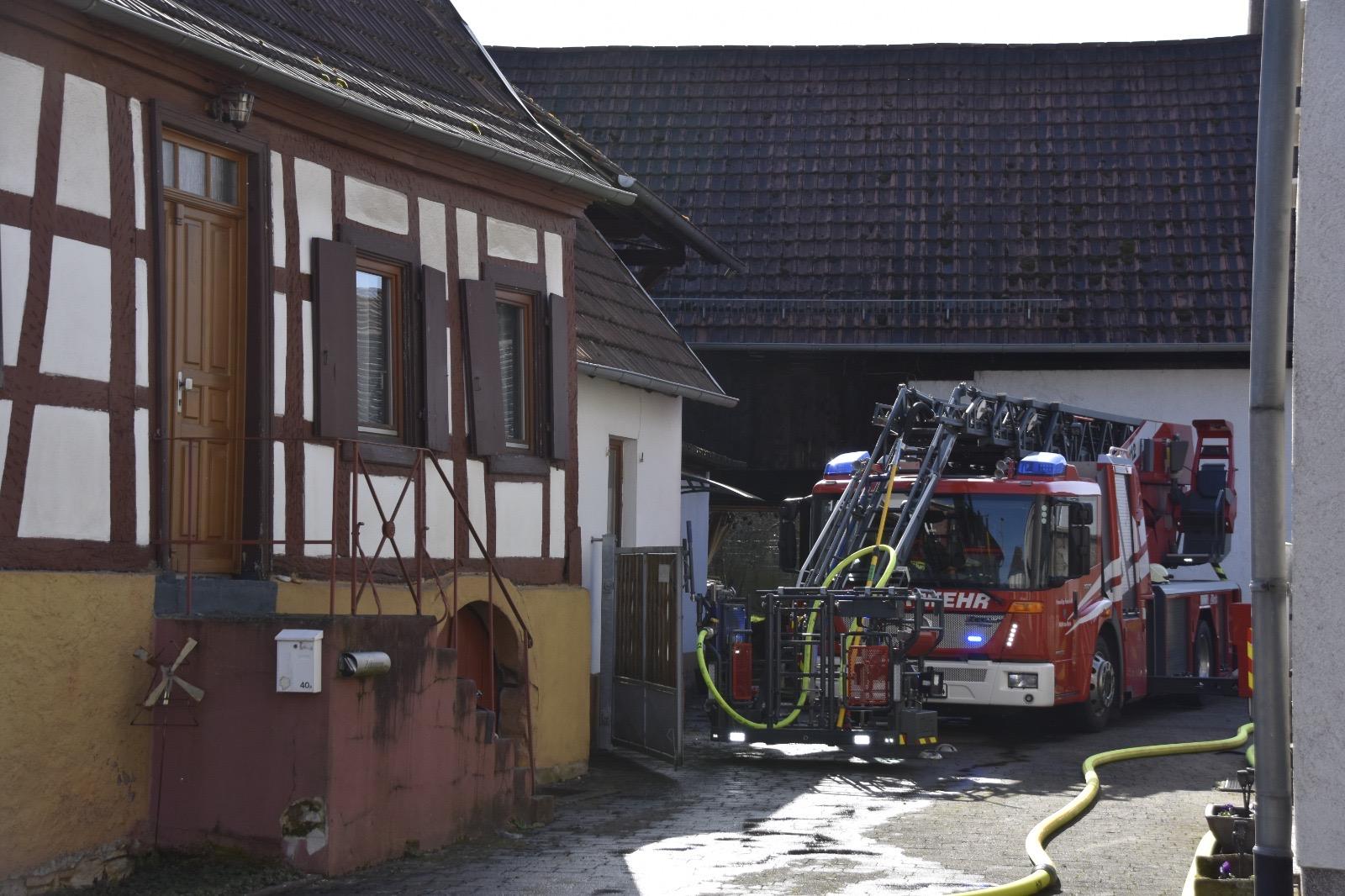 Beim Eintreffen der ersten Einsatzkräfte im Ortsgebiet Büchelberg wurde ein in Vollbrand stehendes Fahrzeug festgestellt. Das Feuer hatte bereits auf zwei Scheunen übergegriffen.