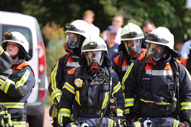 Am gestrigen Samstag, den 26.08.2017 fand die gemeinsame Übung der vier Feuerwehreinheiten der Stadt Wörth, Wörth, Maximiliansau, Büchelberg und Schaidt statt. Angenommene Lage war ein Brand in der Tiefgarage der "Bienwaldresidenz" in der Athur-Nisio-Straße. Der Brand schlug durch einen Feuerüberschlag in das zweite Obergeschoss über. Im Keller wurden zwei Personen vermisst, die zügig gerettet werden konnten. Ebenso mussten von einem Balkon drei Personen gerettet werden. Unterstützt wurden wir bei unserer Übung durch den Rettungsdienst, der mit einem Rettungswagen vor Ort war, sowie vom DRK Wörth. Zu den zahlreichen Zuschauern zählten auch Vertreter aus dem Rathaus.