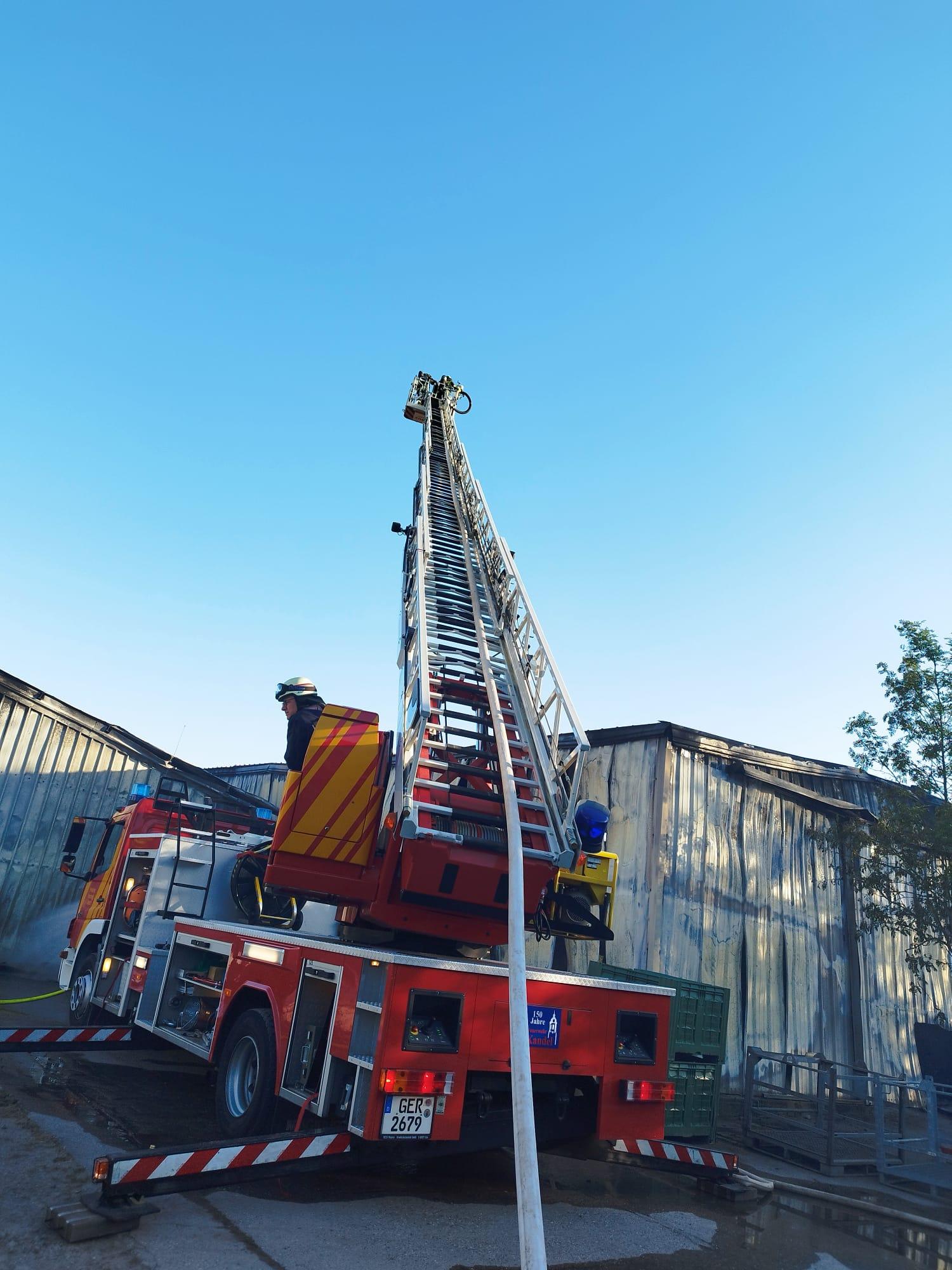 Bei Eintreffen zeigte sich, dass eine landwirtschaftlich genutzte Lagerhalle von ca. 1.200 qm Fläche in Vollbrand stand. In direkter Nachbarschaft stand ein noch unversehrtes Wohnhaus. Daher erhöhte Einsatzleiter Alexander Ditz sofort die Alarmstufe auf „Feuer 3“, was Vollalarm für alle Ortswehren der VG Kandel bedeutete.