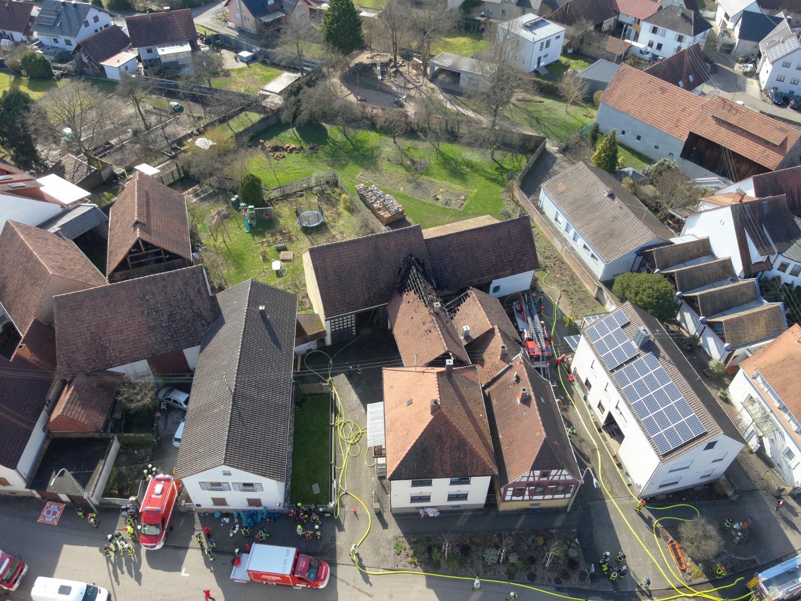 Nach Abschluss der Löscharbeiten wurde die betroffene Gebäudestruktur durch einen Fachberater des Technischen Hilfswerks überprüft. Ein beschädigter Bereich wurde abgesperrt, um mögliche Gefahren durch herabfallende Teile der Dacheindeckung auszuschließen.