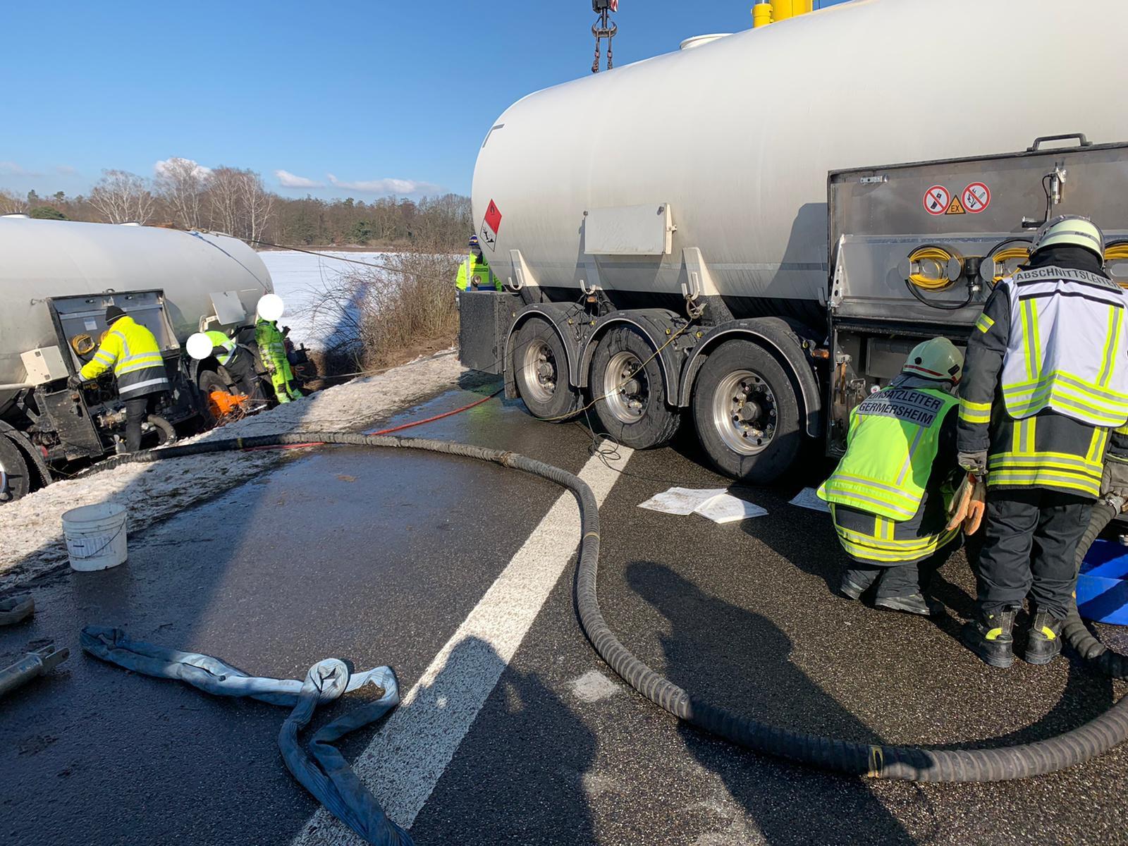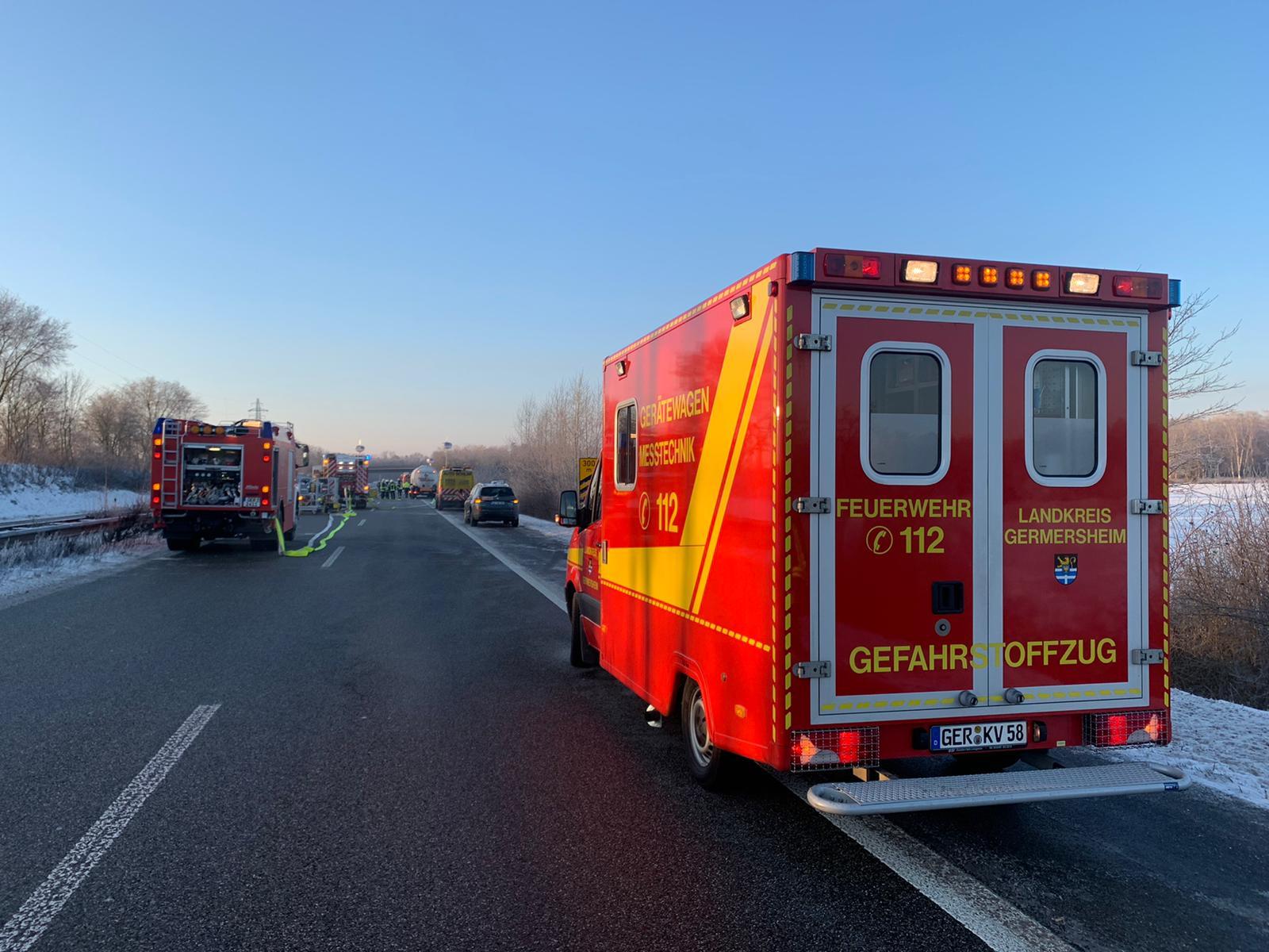 Unsere Mitglieder des Gefahrstoffzuges des LK Germersheim wurden zur Unterstützung eines verunfallten Gefahrstoff-LKW auf der B9 alarmiert.