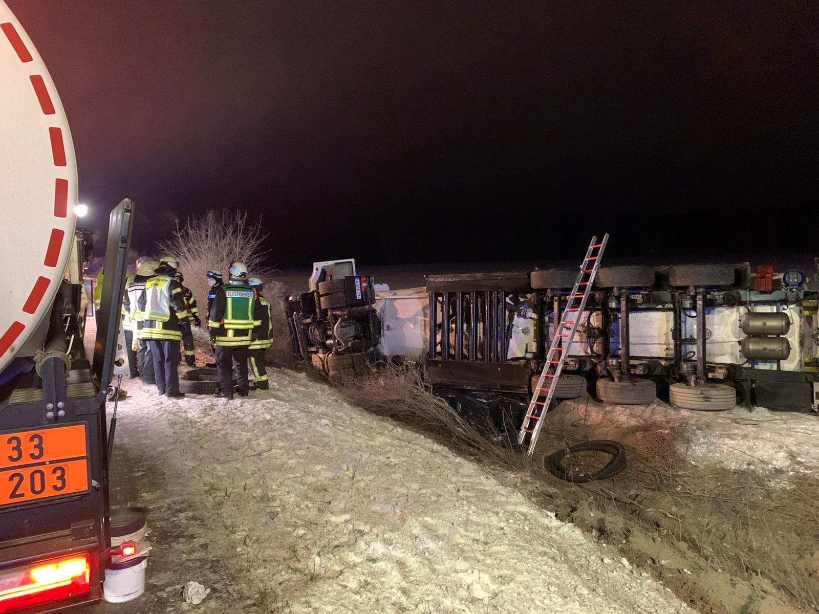 Es wurde der Brandschutz sichergestellt und anschließend die Bergung des LKW unterstützt.