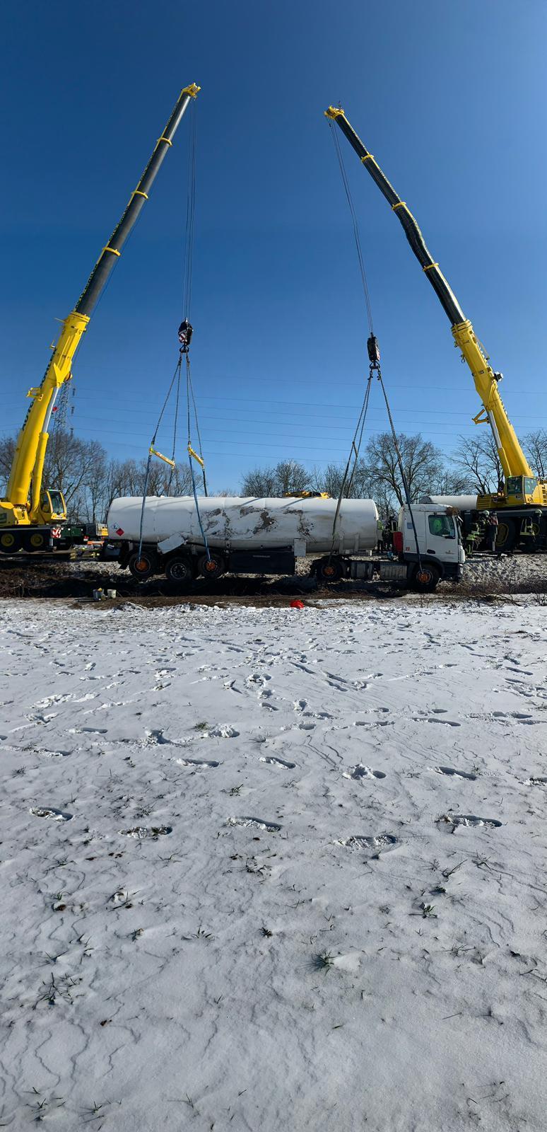 Auf Grund der Witterung und die dementsprechender vorrangiger Räumung der Straße sowie das Umpumpen des beladenen LKW's zog sich die Bergung bis in den Nachmittag. Die B9 musste in beiden Richtungen voll gesperrt werden.