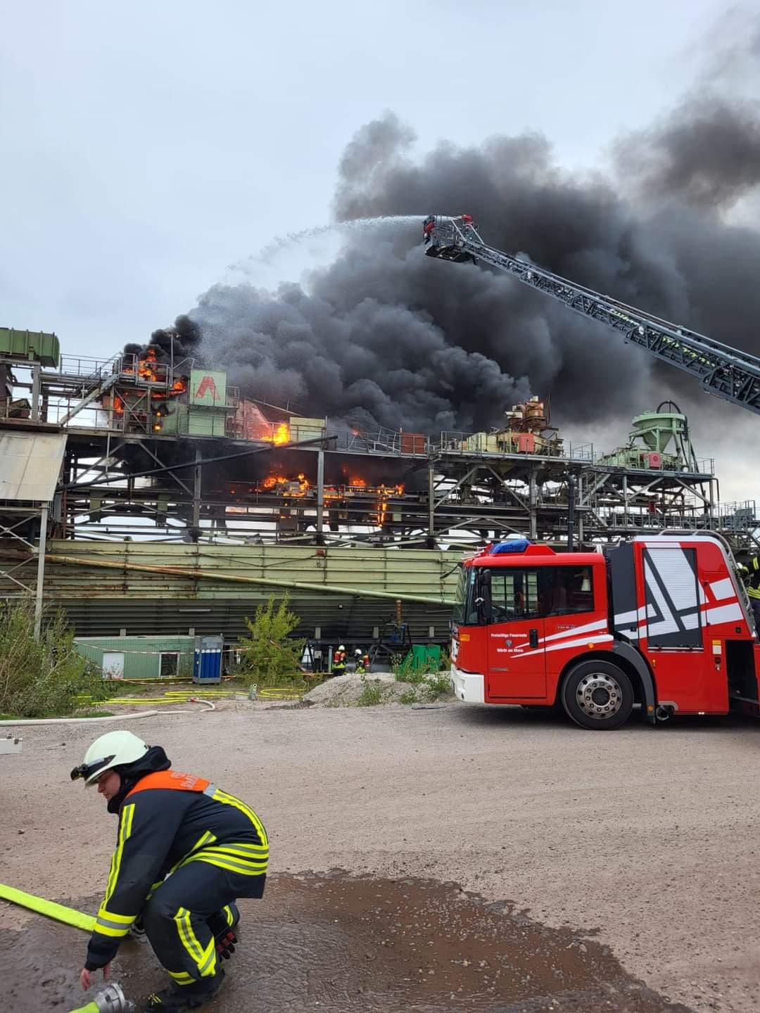 Des Weiteren wurde das Industrielöschfahrzeug der Werkfeuerwehr Daimler Truck alarmiert. Durch den Einsatz von zwei Wasserwerfern und zwei Trupps unter Atemschutz konnte der Brand gelöscht werden. Zur Absicherung der Einsatzkräfte war von Wasserseite das Mehrzweckboot im Einsatz. Gegen Abend wurde die Einsatzstelle mit unserer Einsatzdrohne erneut kontrolliert.