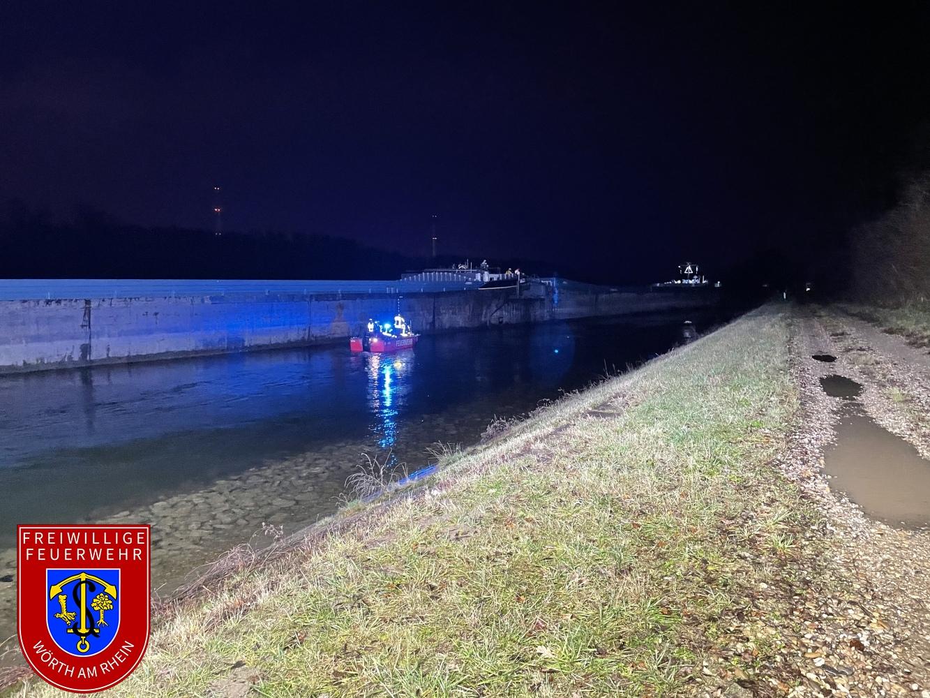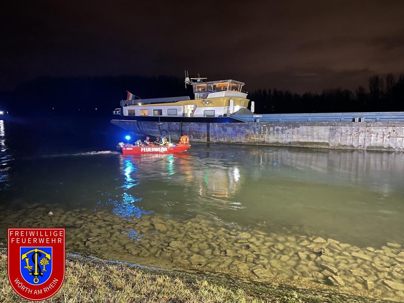 Die Kameraden aus Karlsruhe verschafften sich über das Hilfeleistungslöschboot PAMINA 1 Zutritt zur Einsatzstelle, sodass der Brand gelöscht werden konnte.