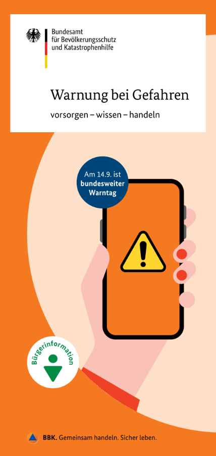 Am 14.09.2023 ab 11 Uhr sollen nach Angaben des Bundesamtes für Bevölkerungsschutz und Katastrophenhilfe (BBK) Sirenen schrillen. Warnapps und das neue Warnsystem „Cell Broadcast“ sollen, wie schon im vergangenen Dezember, zum Einsatz kommen. Auch Rundfunk, Fernsehen und das Internet soll integriert werden.